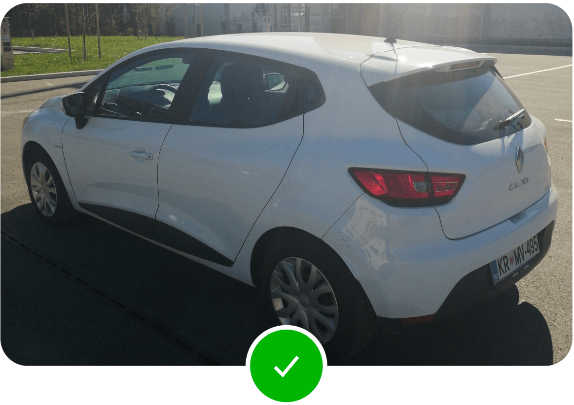 Zajemite desni zadnji del vozila. Vozilo naj bo vidno v celoti.