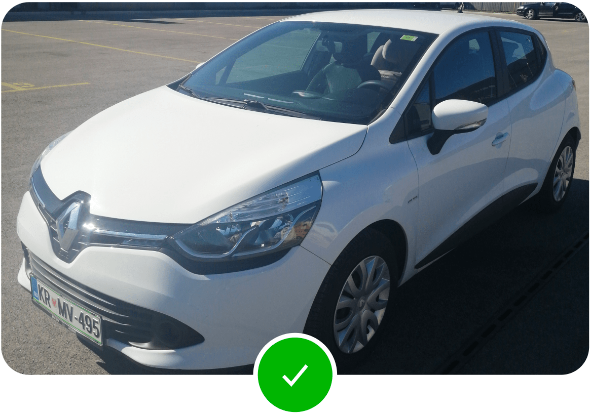 Zajemite desni sprednji del vozila. Vozilo naj bo vidno v celoti.